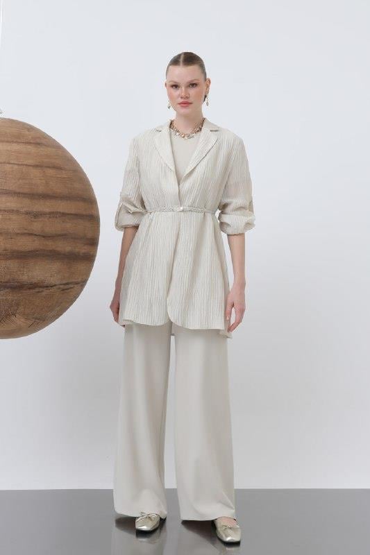 Kadın Beli Kuşaklı Pantolonlu Takım 14316 Odress STONE
