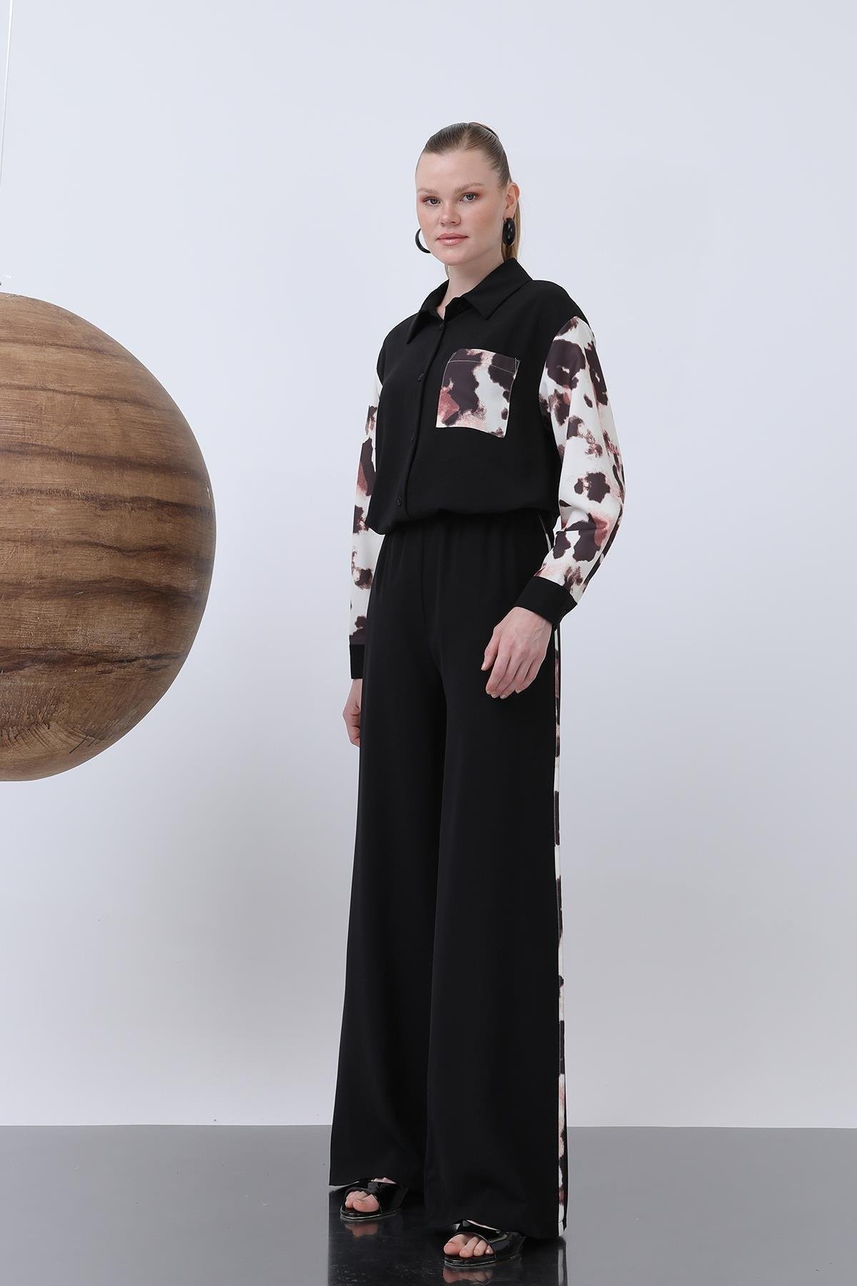 Kadın Beli Lastikli Bol Paça Pantolon 18236 Odress Puane BLACK