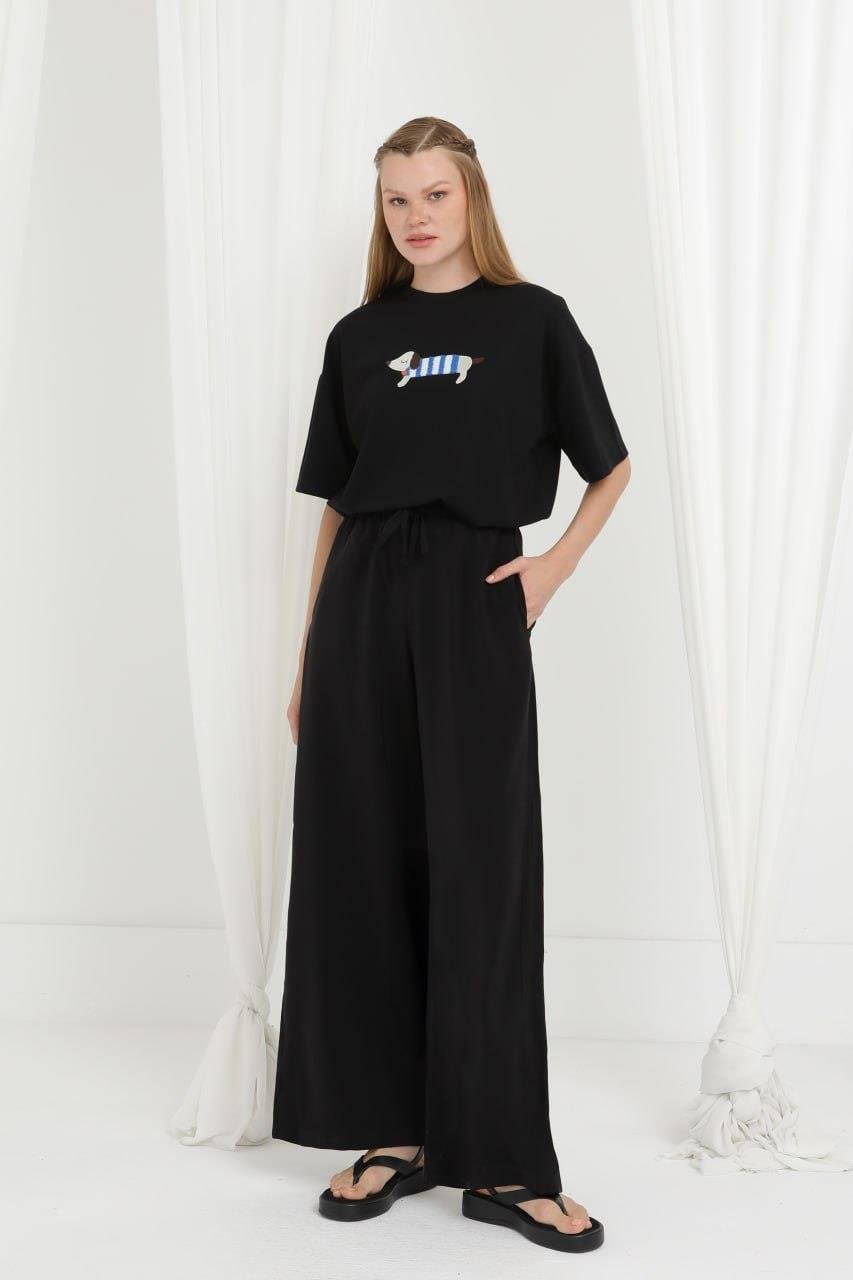 ODRESS_Pantolon_Kadın Beli Lastikli Bol Paça Pantolon 20646 Odress BLACK