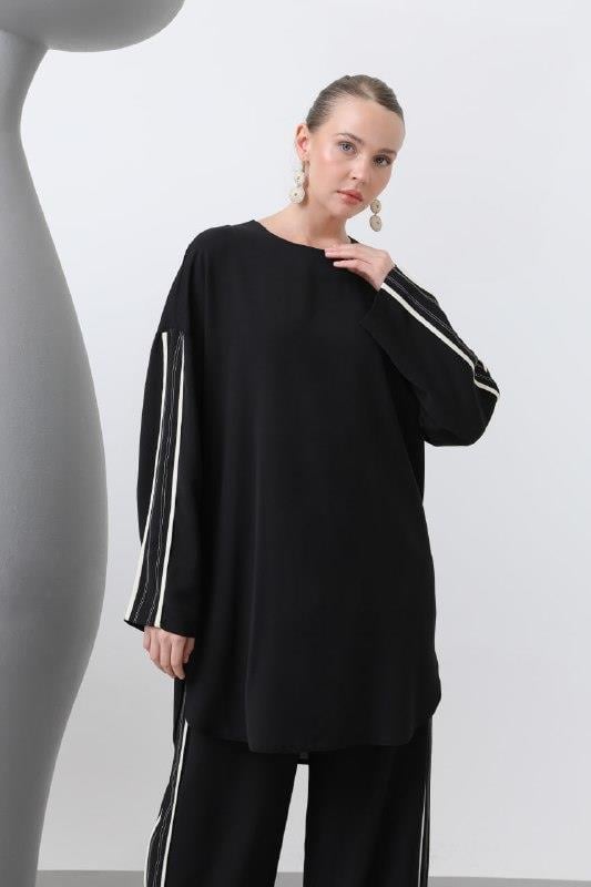 Kadın Biye Detaylı Pantolonlu Takım 14318 Odress SİYAH