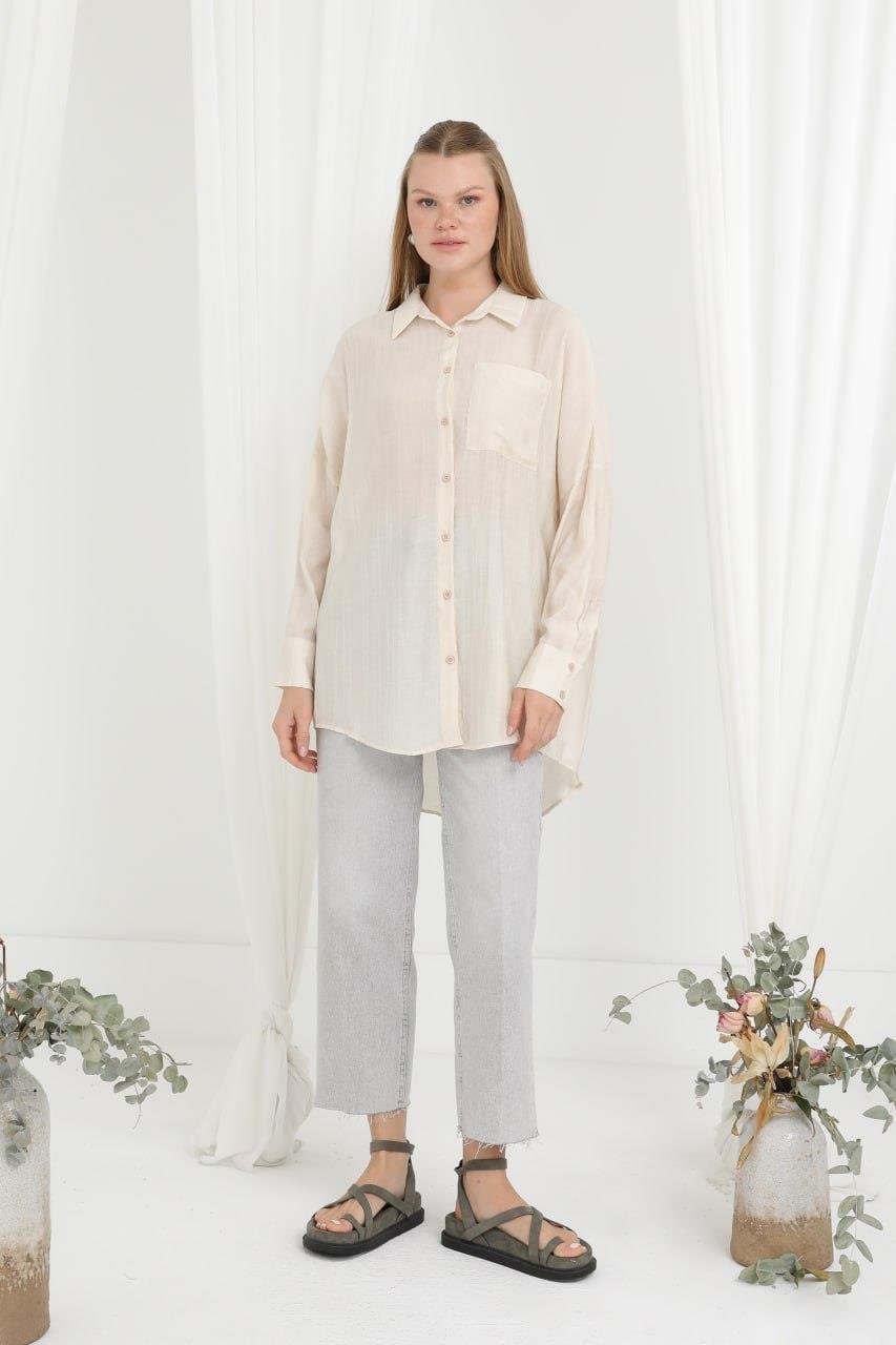 Kadın Cep Detay Önden Düğmeli Gömlek 20645 Odress BEIGE