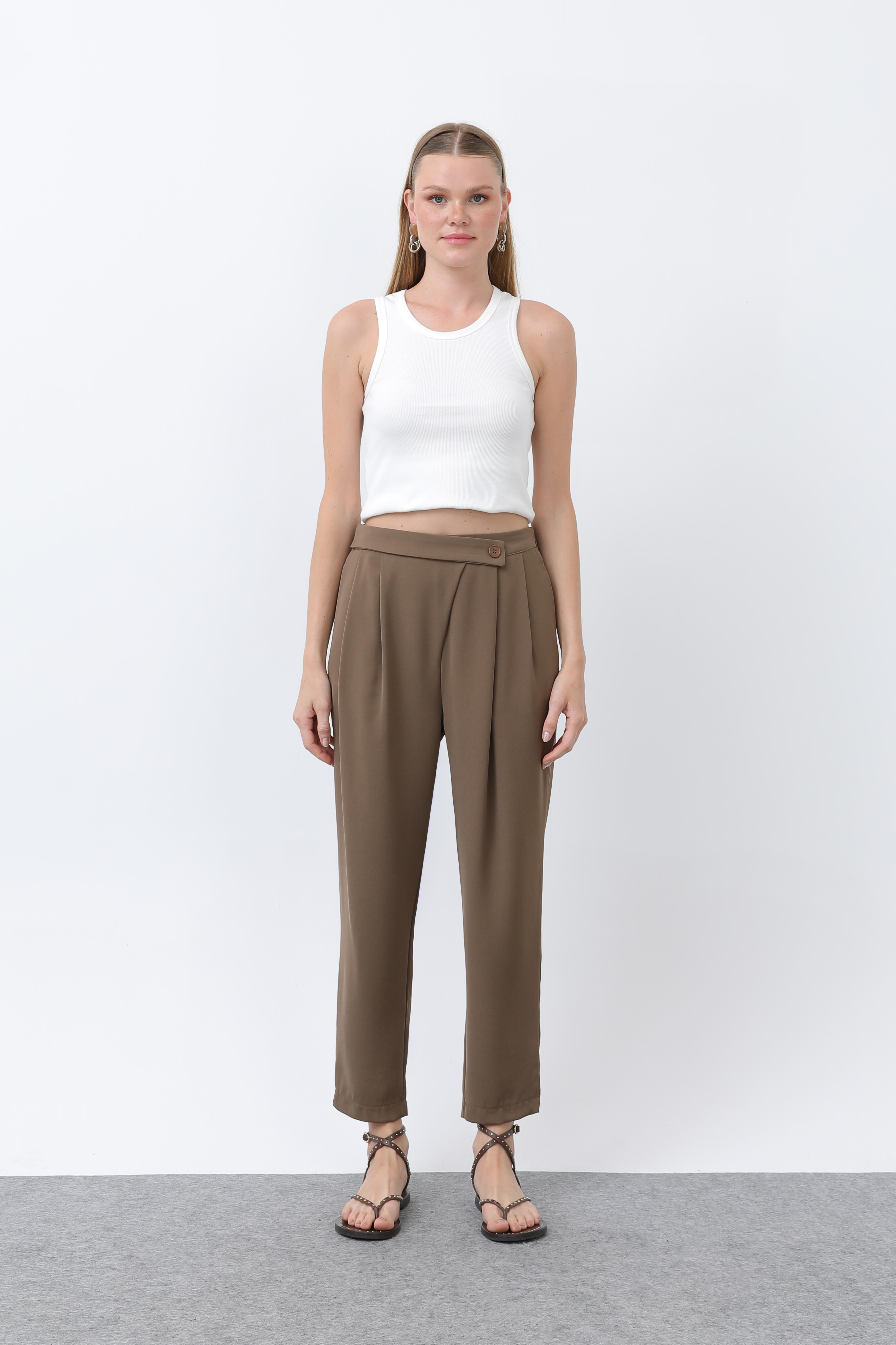 ODRESS_Pantolon_Kadın Çift Pileli Kalem Kumaş Pantolon 18245 Odress MİNK