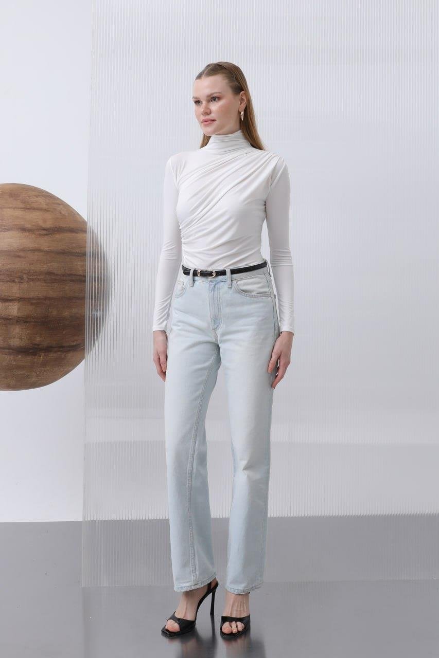 Kadın Dik Yaka Drape Detay Viskon Bluz 20639 Odress ECRU