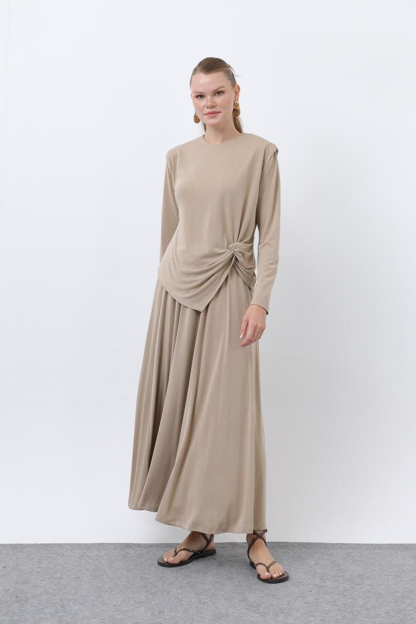 ODRESS_Etek Takım_Kadın Düğüm Detay Etek Takım 14347 Odress BEIGE