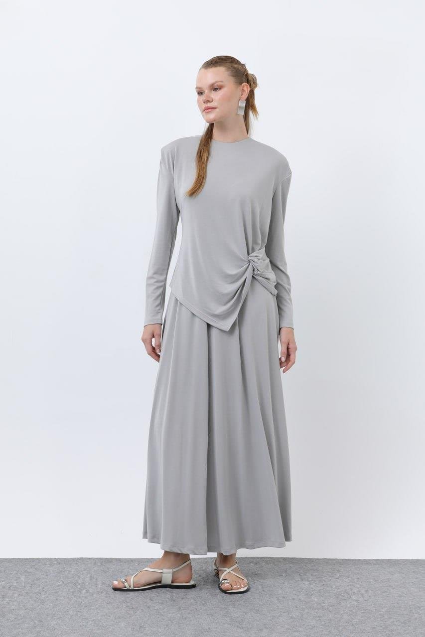 ODRESS_Etek Takım_Kadın Düğüm Detay Etek Takım 14347 Odress GREY