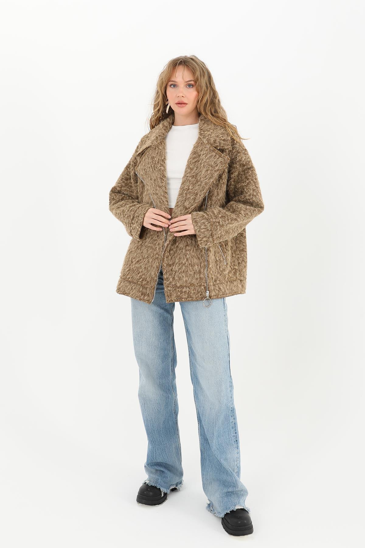 Kadın Gömlek Yaka Fermuarlı Kaşe Kaban 32090 Odress Soul BROWN