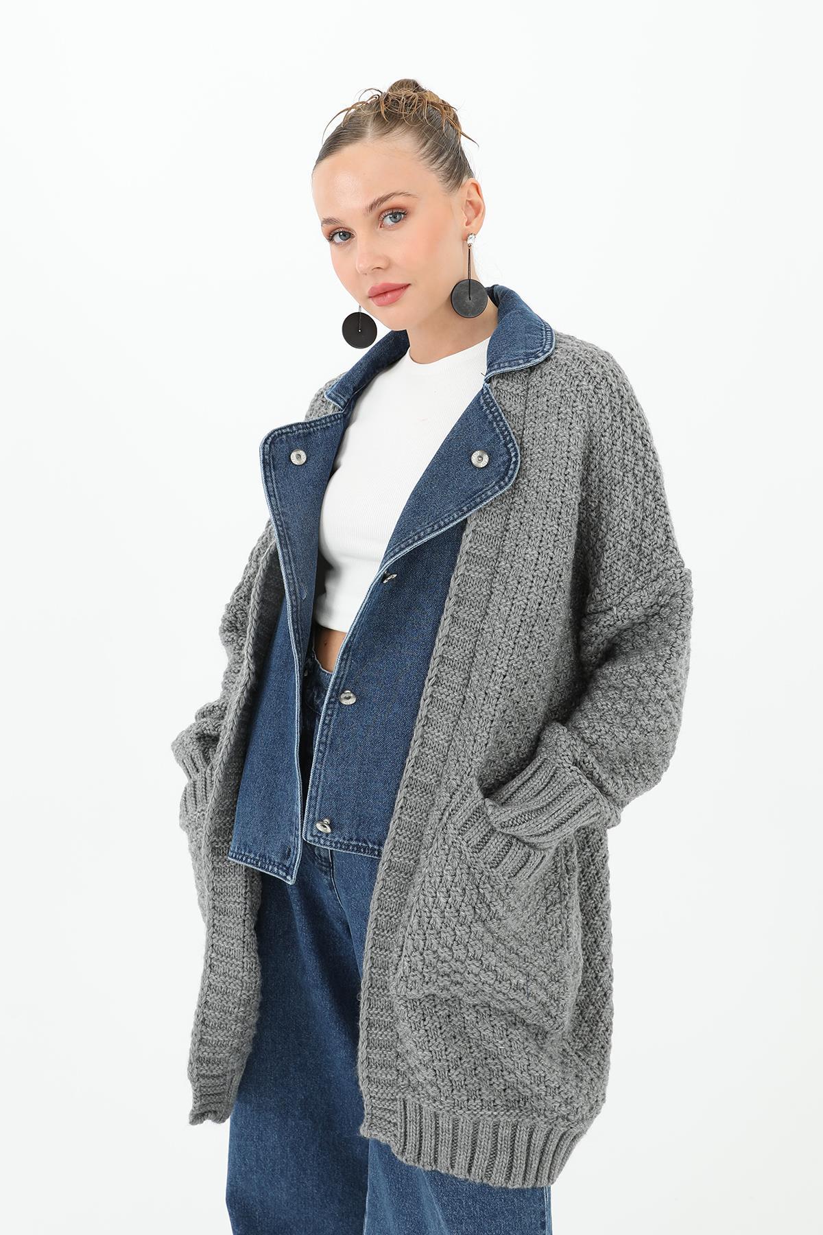 ODRESS_Hırka_Kadın Kot Detaylı Triko Hırka 32040 Odress Soul ANTRASİT