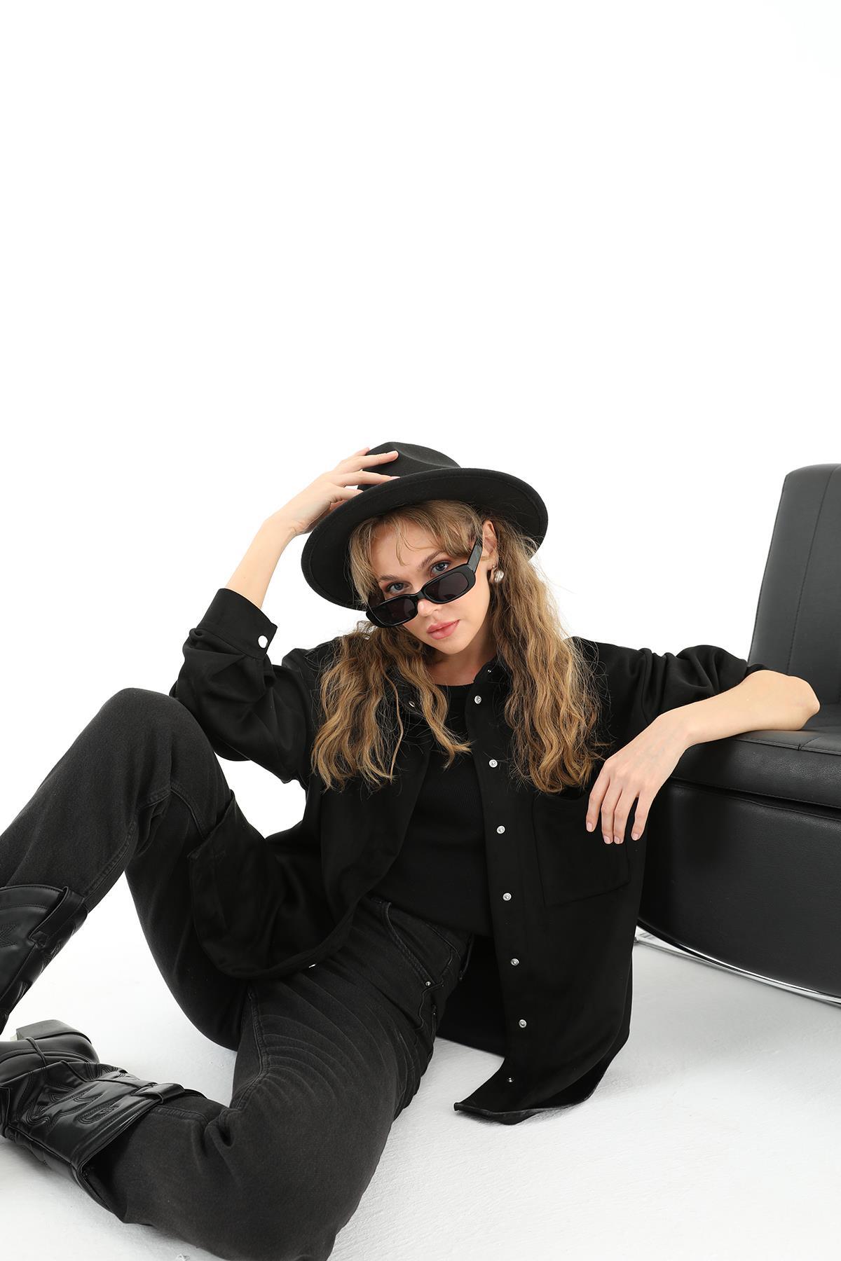 ODRESS_Gömlek_Kadın Manşet Kol Ucu Manşet Detaylı Gömlek 32101 Odress Soul BLACK