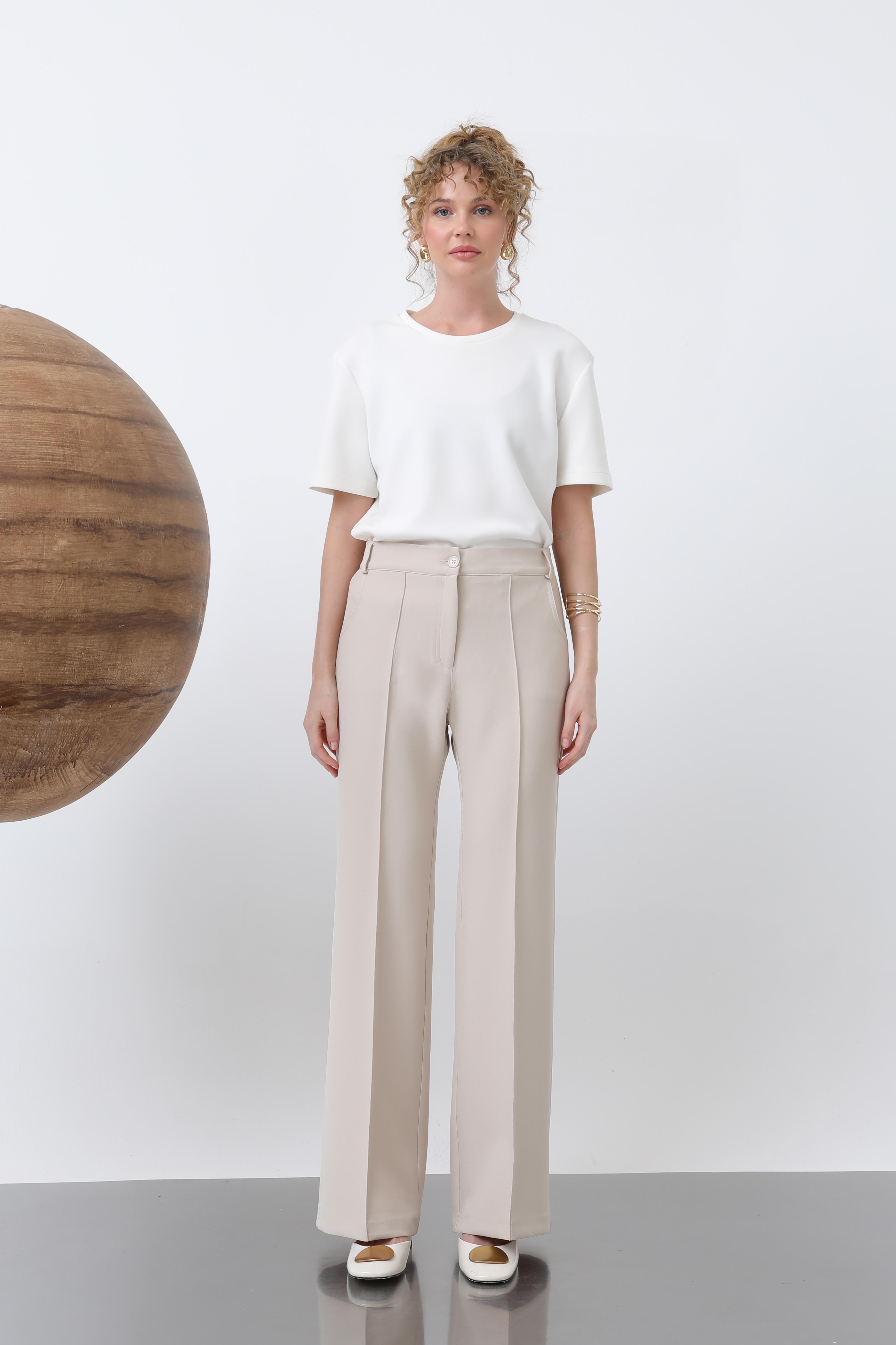 ODRESS_Pantolon_Kadın Nervür Dikişli Pantolon - 18226 Odress STONE