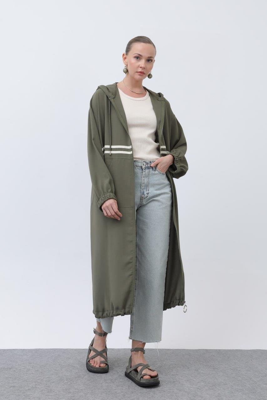 Kadın Önü Şeritli Fermuar Detaylı Kap - 15199 Odress HAKİ