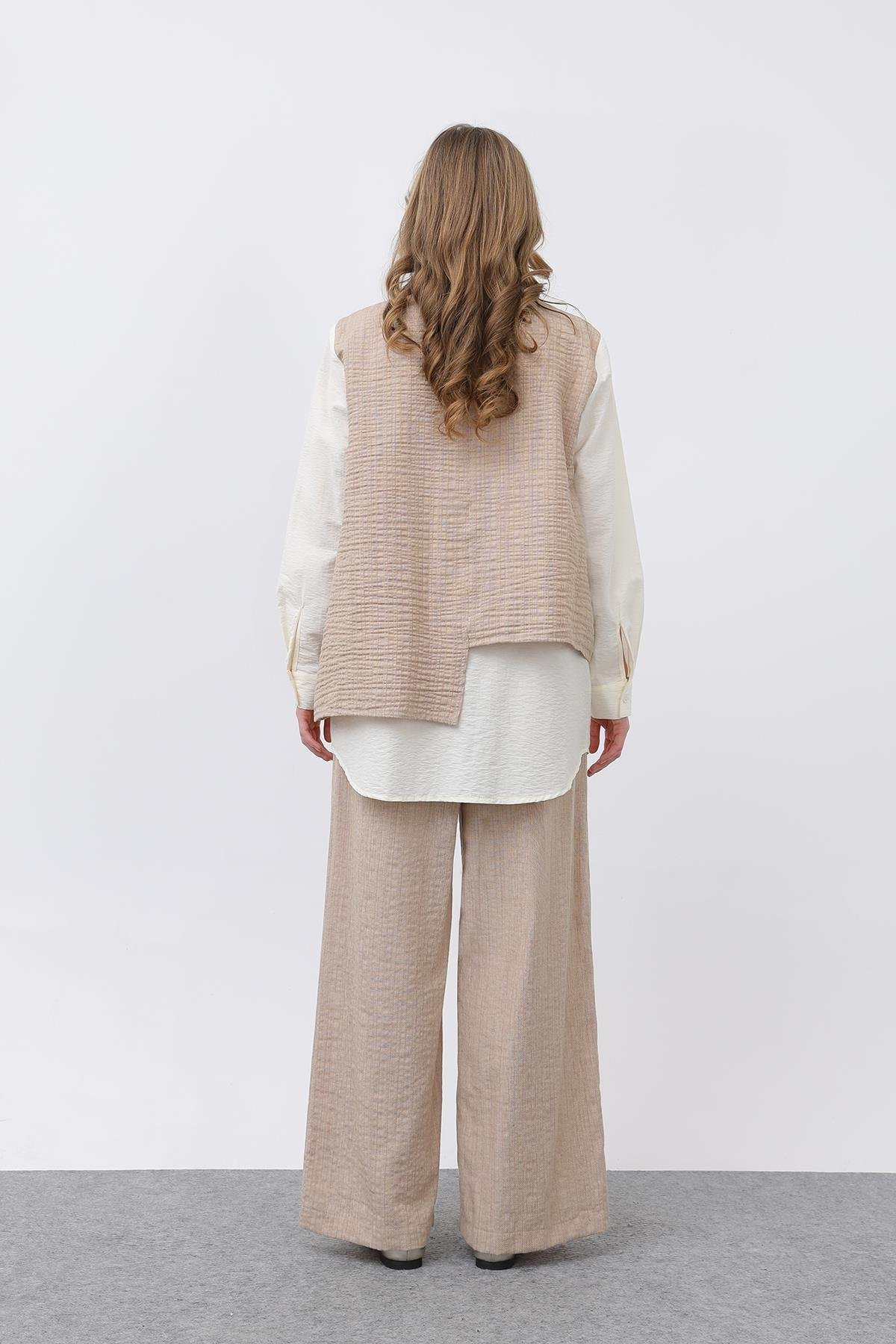 ODRESS_Pantolon Takım_Kadın Önü Yelek Görünümlü Apoletli Pantolon Takım 14327 Odress CAMEL-BEİGE