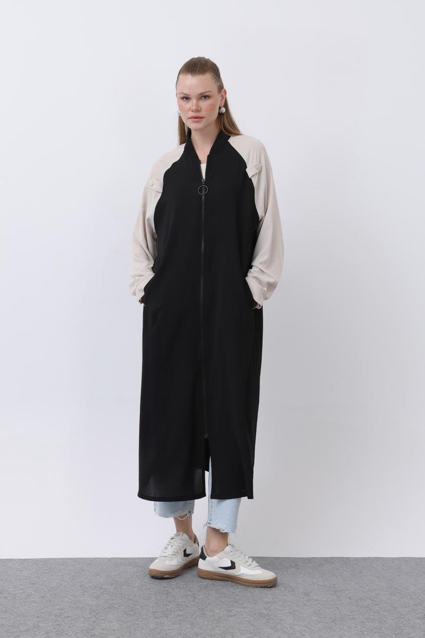 Kadın Reglan Kol Çift Renkli Fermuarlı Kap 15200 Odress BLACK