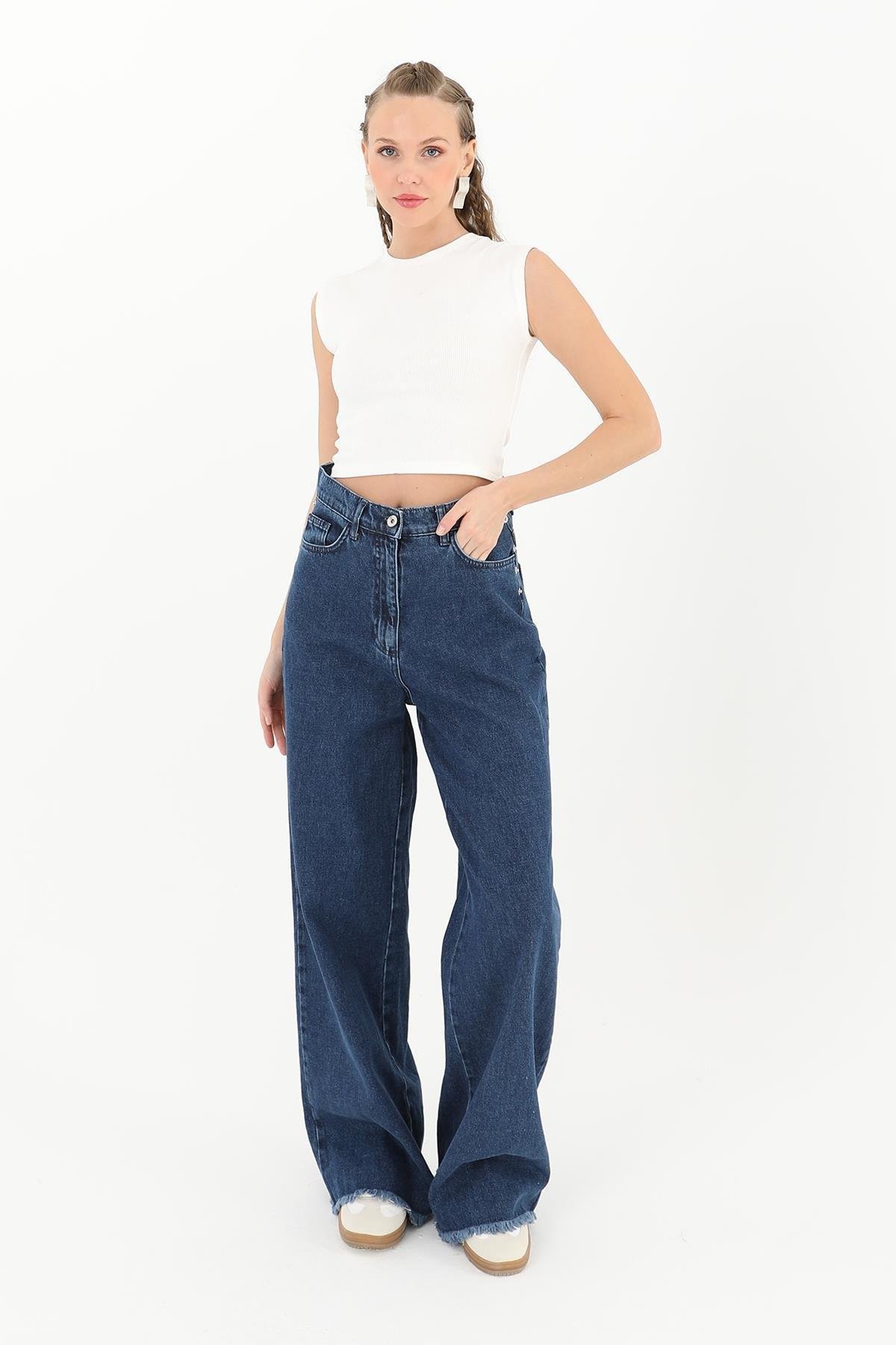 Kadın Yanlarda Rivet Detaylı Pantolon 32072 Odress Soul BLUE