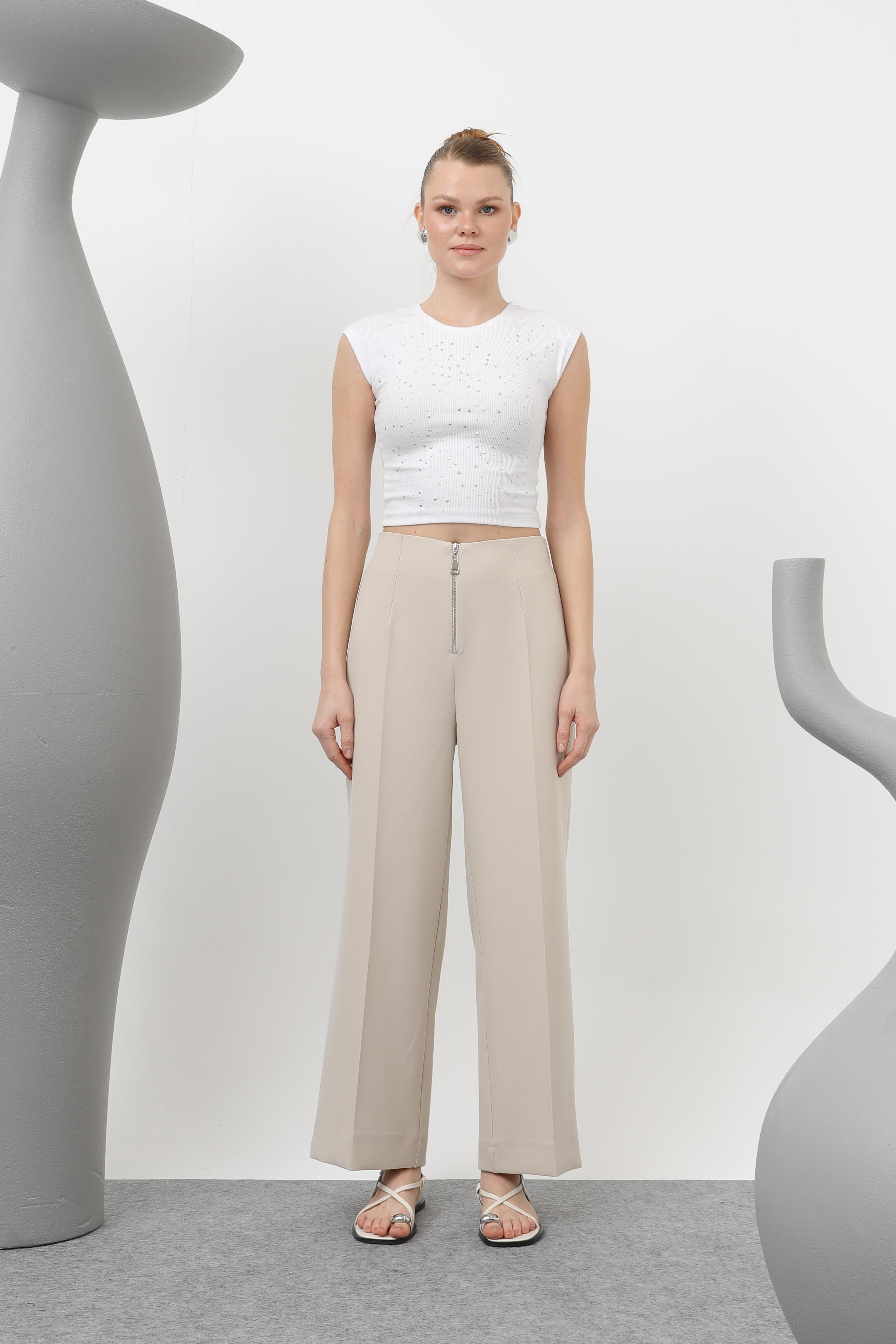 Kadın Yüksek Bel Bol Paça Pantolon 18228 Odress Puane STONE