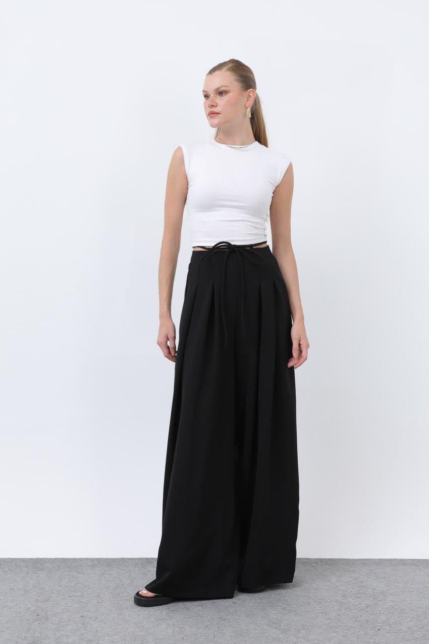 Kadın Yüksek Bel Pileli Palazzo Pantolon 18241 Odress BLACK