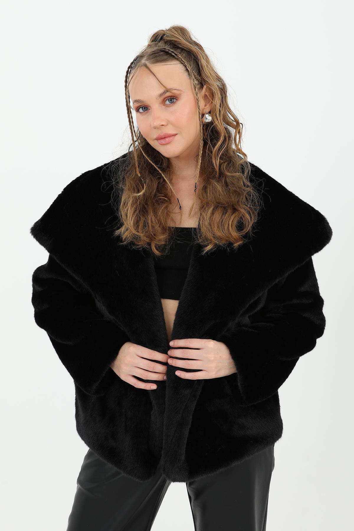 Kadın Yumuşak Tüylü Kısa Kaban 32099 Odress Soul BLACK